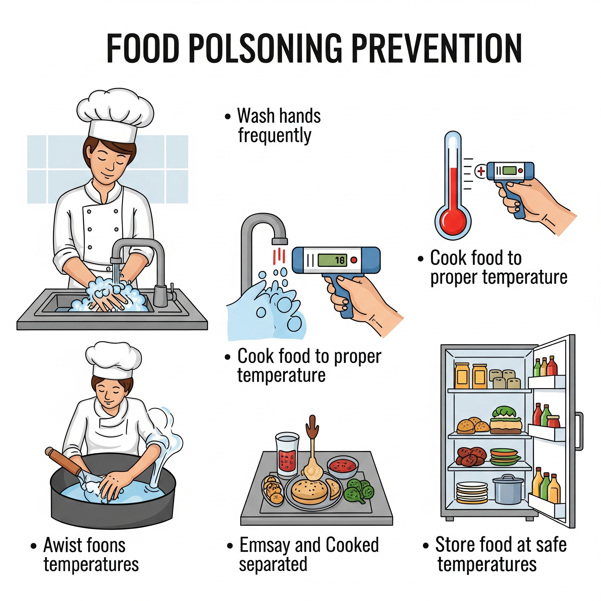 ✔ **음식 완전 조리하기** – 중심온도 75도 이상에서 1분 이상 조리해야 살모넬라균이 사멸됩니다.