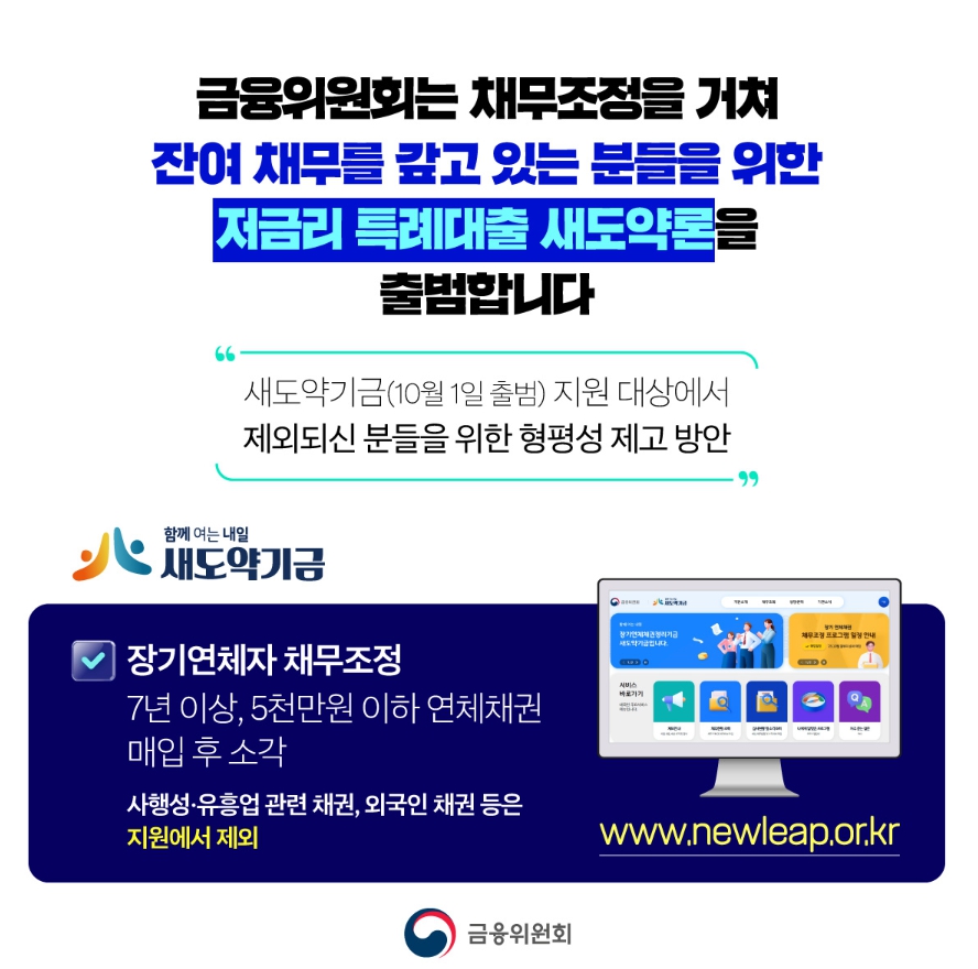 새도약론은 단순한 자금 지원이 아니라 신용 회복을 돕는 구조로 설계되었어요.