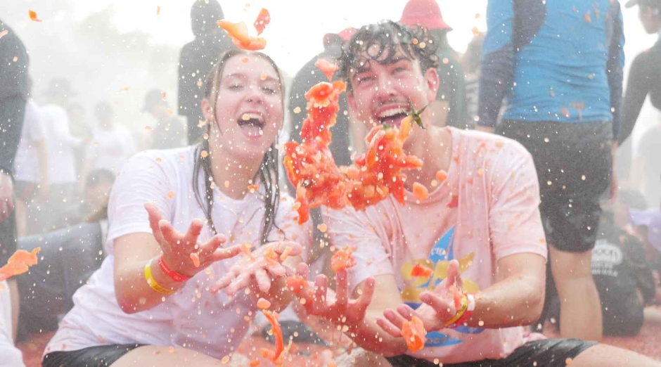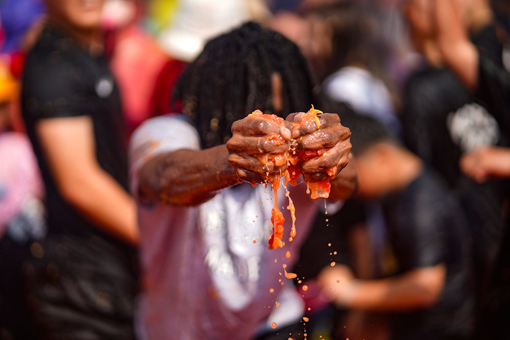 가장 뜨거운 인기를 끄는 ‘토마토 피아존’에서는 물 대신 토마토를 던지며 스트레스를 날리는 체험이 가능합니다. 성인과 어린이 구역이 나뉘어 있어 안전하게 즐길 수 있으며, 축제의 하이라이트인 ‘황금반지를 찾아라’도 이곳에서 진행됩니다.